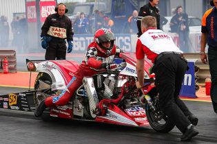 How do you sit on the bike when you´re driving is a common question among newcomers to dragbike racing. Above you can see the answer by a future driver.