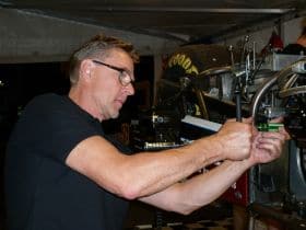 A lot of work has been done to the backframe of the chassie. We want to move the centre of gravity forward in the chassie construction and also strengthen up the backframe. The amount of power the paralelltwin engine produce puts a lot of stress on the chassie and this work is to prevent any problems that can occur during the season. The wheelbase is now increased +100 millimeters with a total measure of 97 inch and that will make the bike easier to handle in top speeds reaching 220 miles per hour! Per measured and produced the chassieparts and Mats, the team welder, put everything together with the TIG-machine in the best possible way.